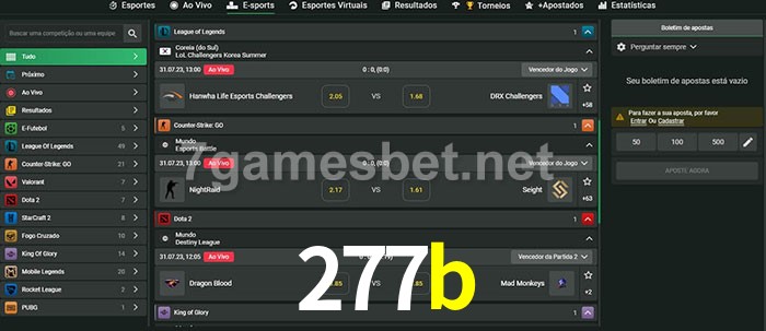 O 277b oferece uma grande seleção de opções de apostas em e-sports com probabilidades competitivas